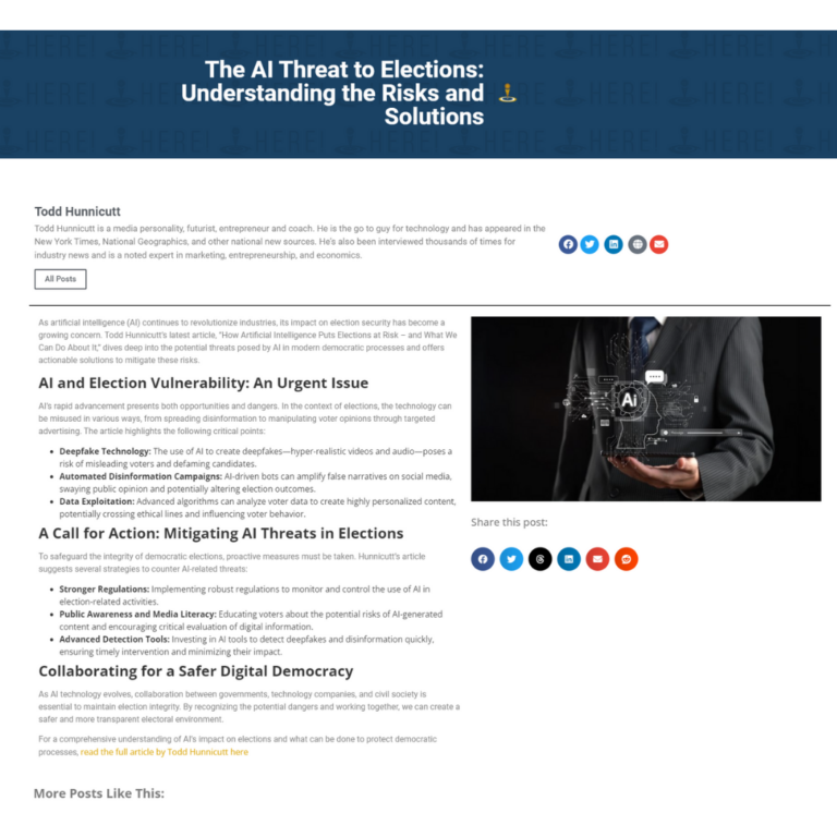 The AI Threat to Elections: Understanding the Risks and Solutions by Todd Hunnicutt
